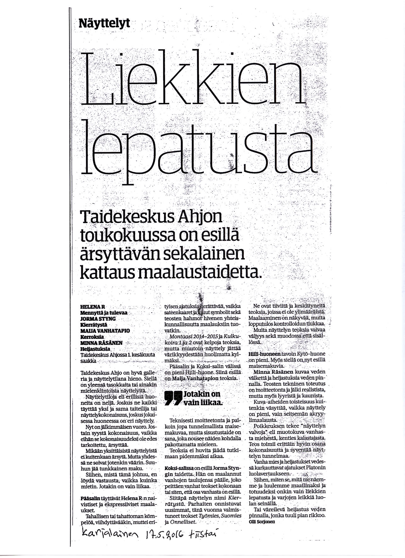 Olisihan se kiva jos aina joku rivi lehdessä olisi, varsinkin kun noita konsertteja varten niin kovasti treenataankin.