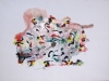 Ensin tehtiin vahasta työt ja laitettiin niihin ”juoksut”. Tuo toinen kyllä on puusta, mutta palaahan sekin.Sitten niiden ympärille valettiin ihmemössöstä muotti. Tuo on vähän haljennut.Sitten alettiin rakentaan uunia.Siitä se hiljalleen…Ensin muotit sisään, sitten vasta seinät pystyyn. Eri periaate kuin taloissa, joissa asukkaat menevät sisään vasta seinien pystyttämisen jälkeen.Laitetaan vaikka päällekäin jos ei muuten mahdu.Sitten seinät pystyyn.Ja katto.Ja savupiippu.Ja ei muuta kuin tulet alle, 2 kpl, poikittaisiin kulmiin (voikohan noin sanoa: poikittaisiin?).15 tunnin päästä tämä vaihe ohi. Uuni auki.Rivakasti märät ripsirätit poltettujen, jäähtyneiden muottien ympärille.Kädet sottaantuu.Sitten toinen uuni pystyyn, pronssin sulatusta varten.Siellä voi olla sisällä kuuma.Tältä näyttää onnistunut muotti.